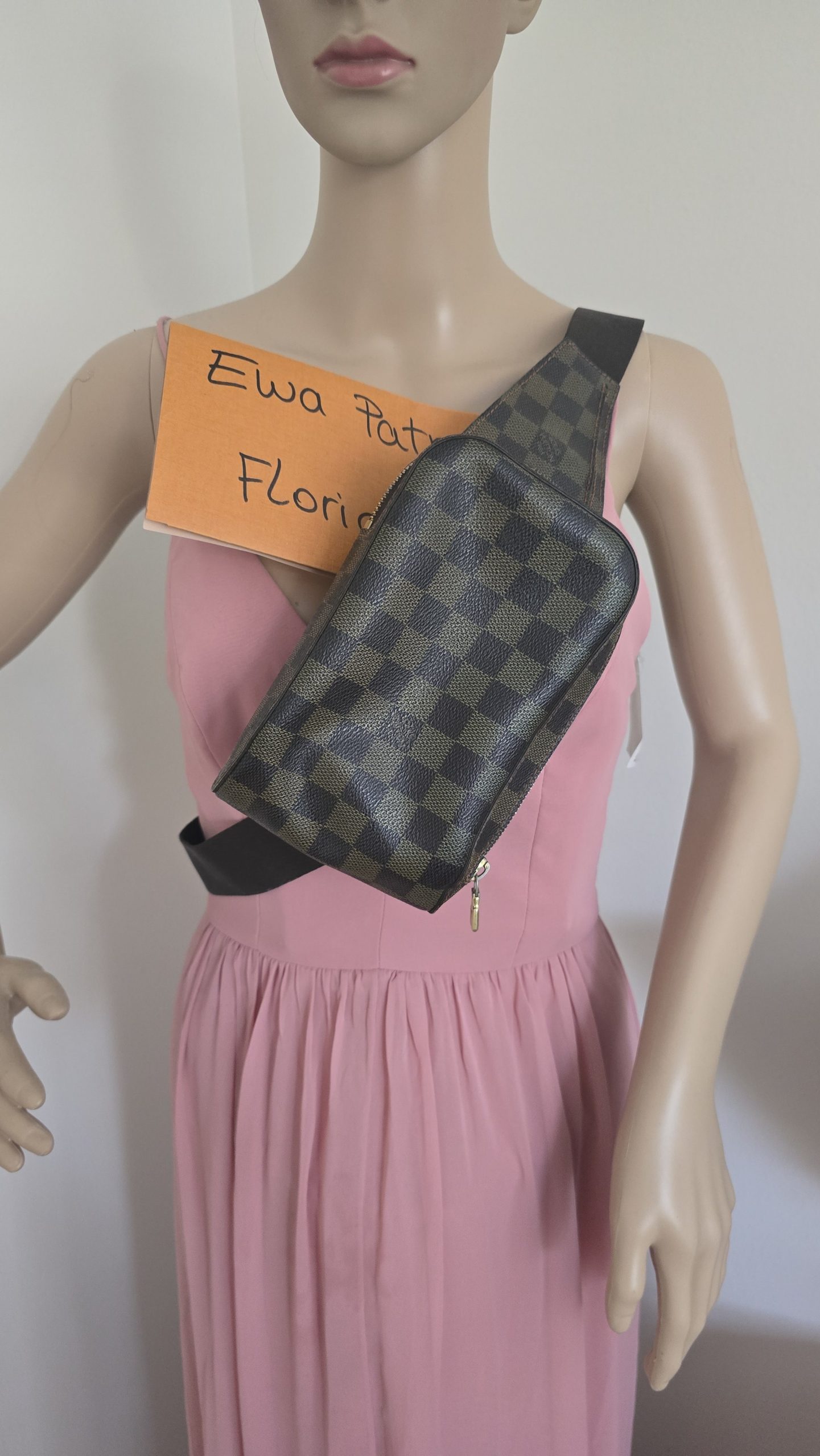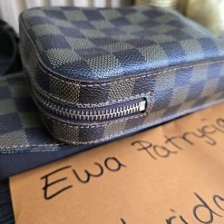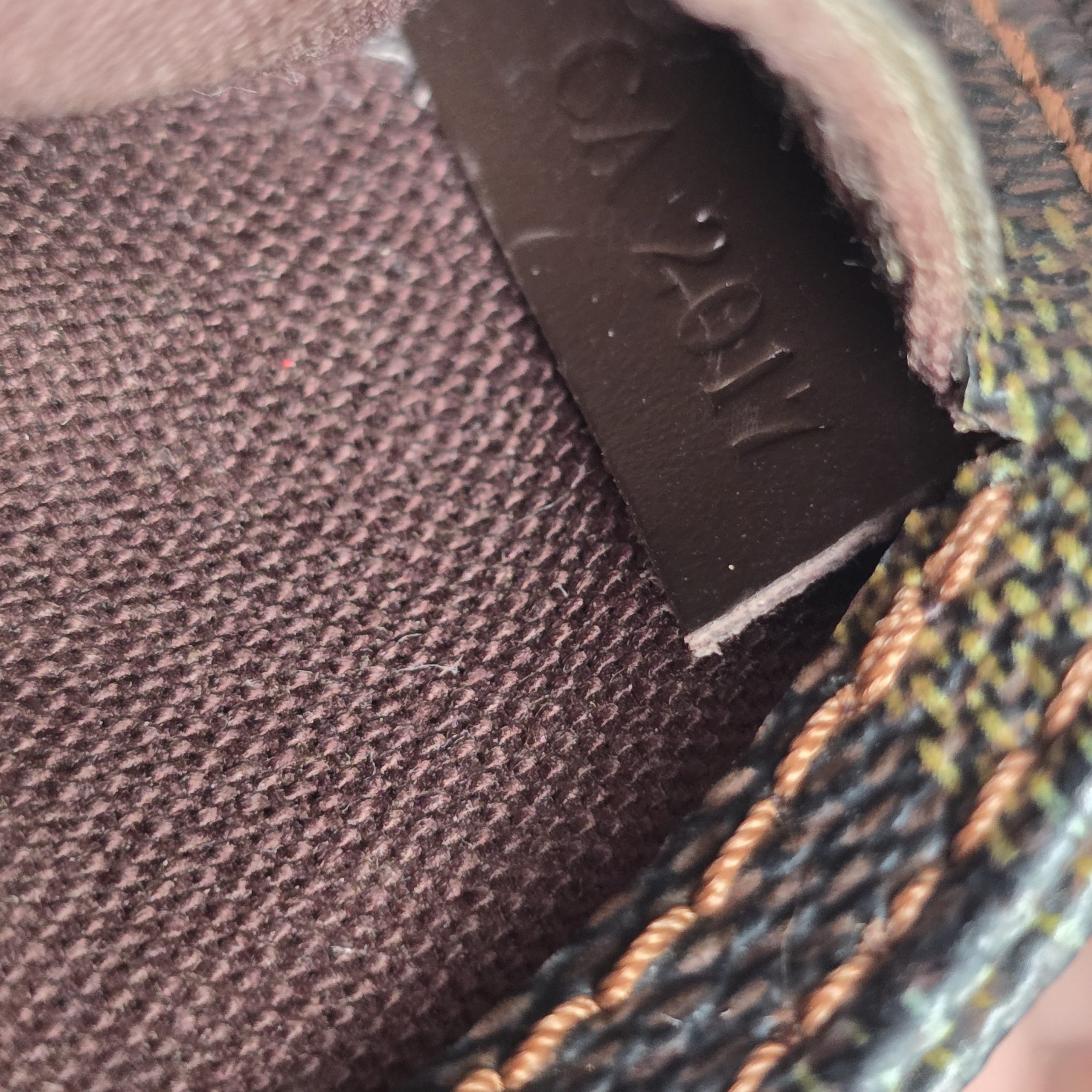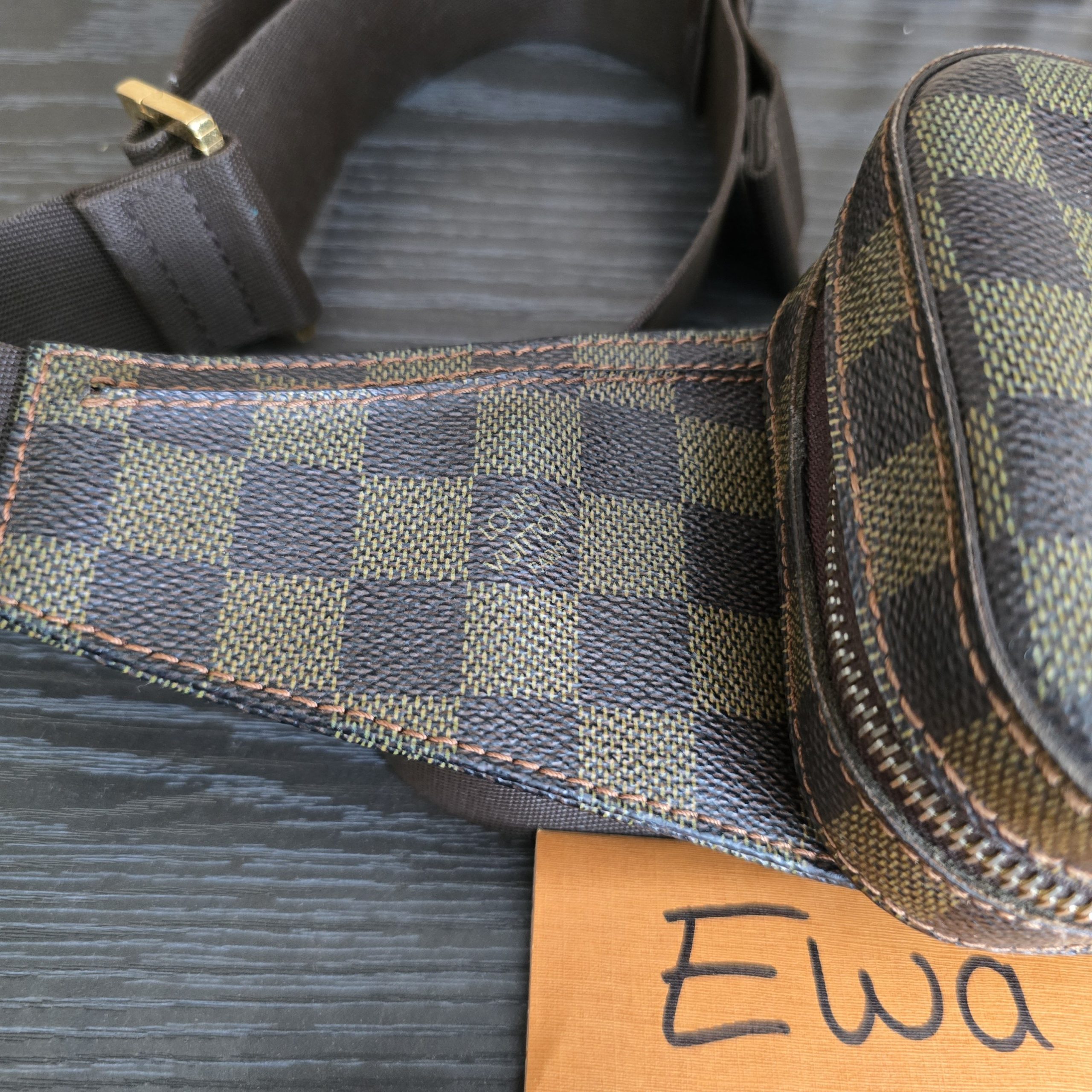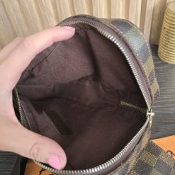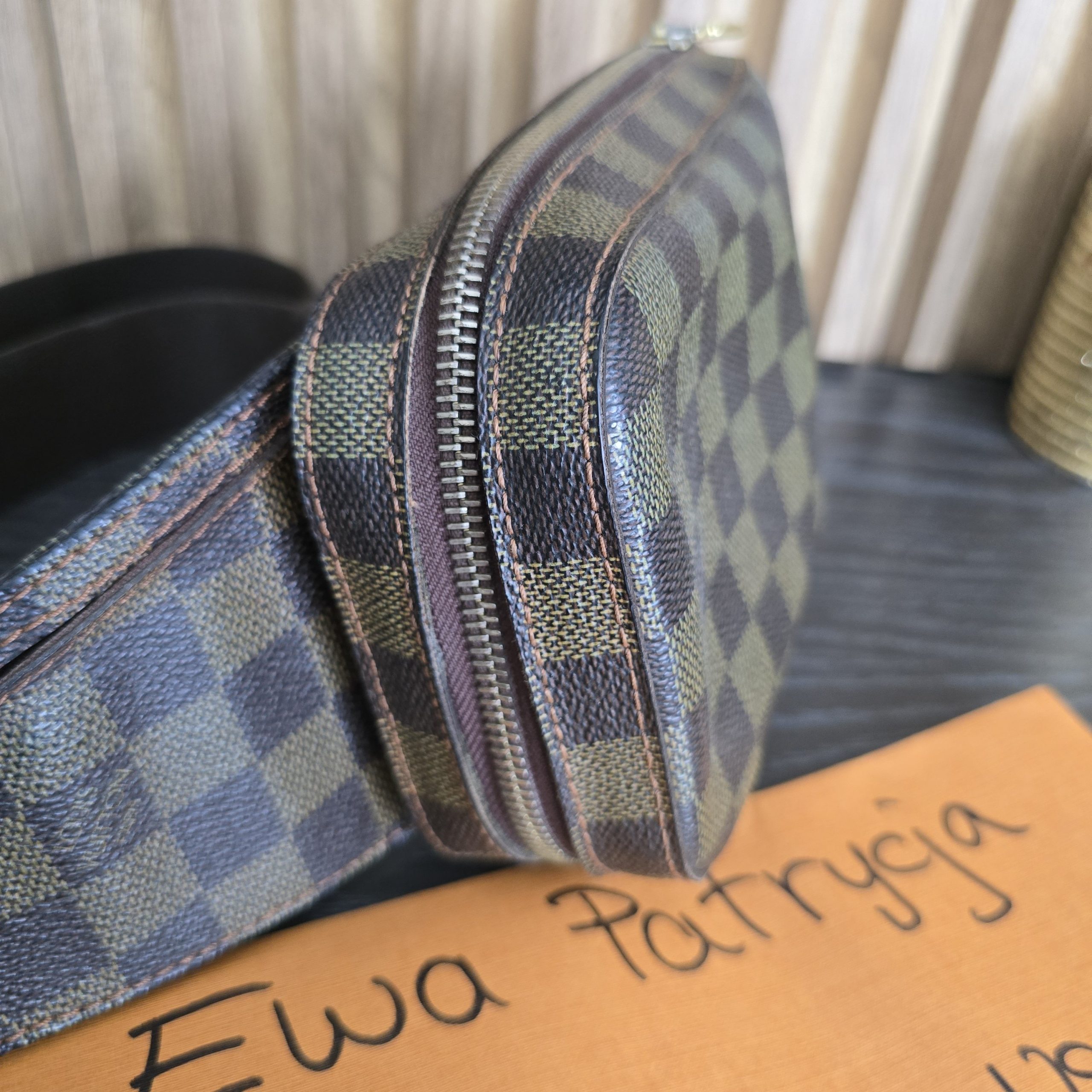 Gently used condition, slight discoloration on canvas, minimal wear on corners, no cracks on canvas, light tarnish on hardware. clean inside